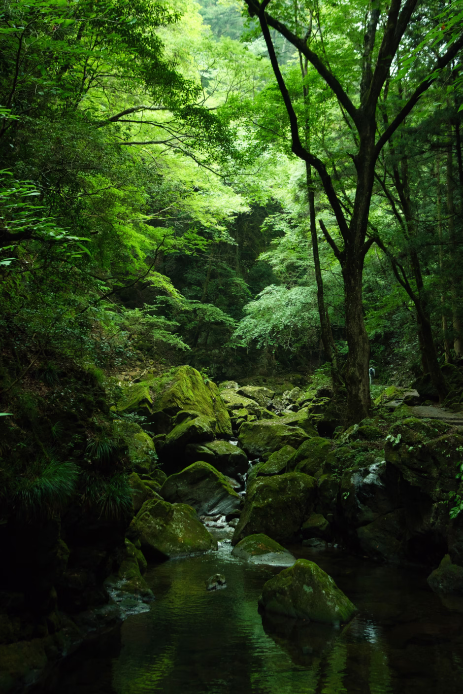 深い森の中に足を踏み入れると、まるで別世界。木々の緑と苔の絨毯が広がり、神秘的な雰囲気に包まれます。