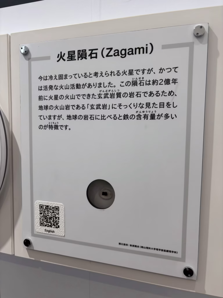 実物の隕石展示も!火星や月からやってきた石を間近で見ることができます。