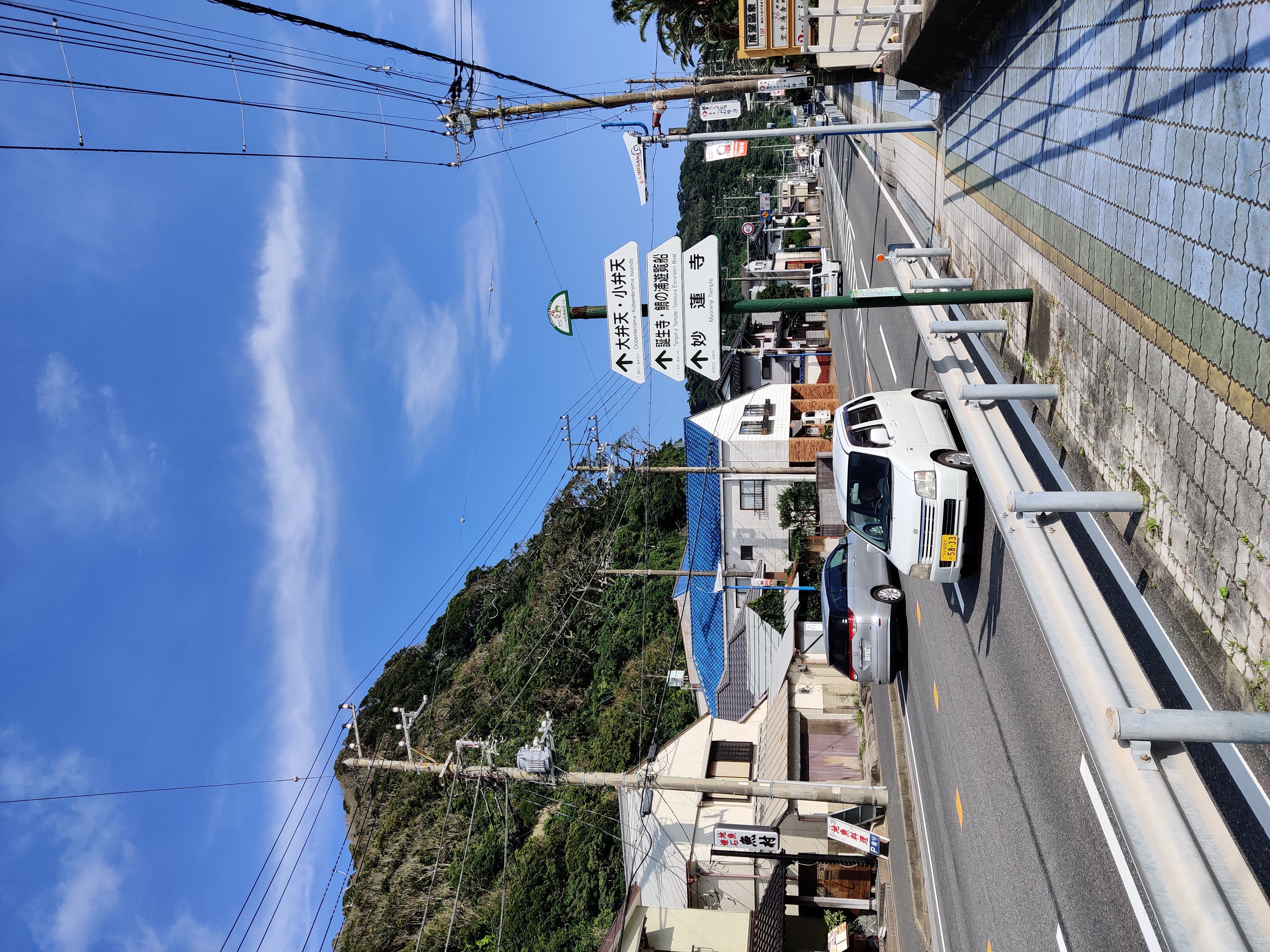 誕生寺でお参りを済ませたら、再び海沿いの道へ。