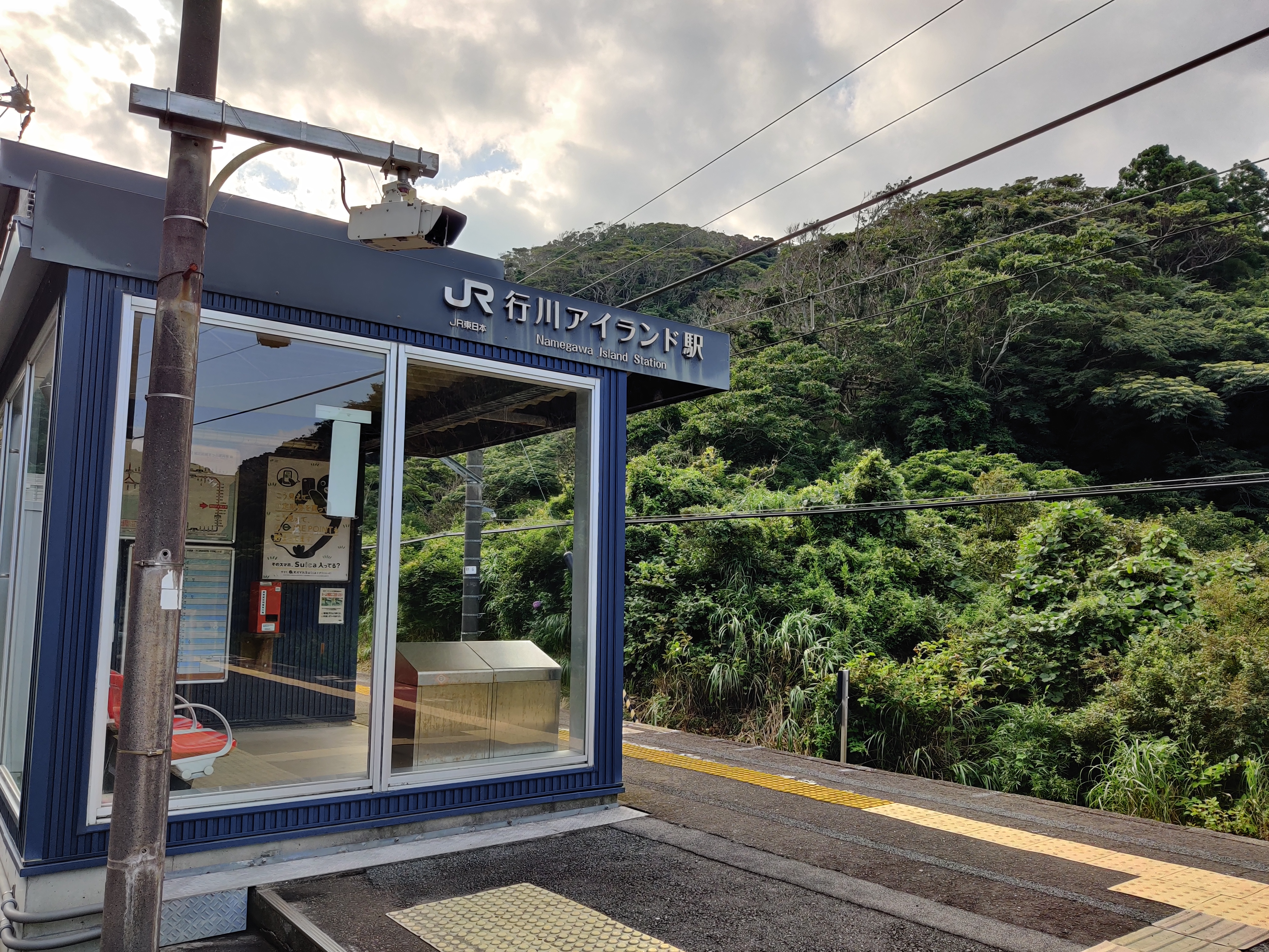 行川アイランド駅。待合室があるのは助かりますね、