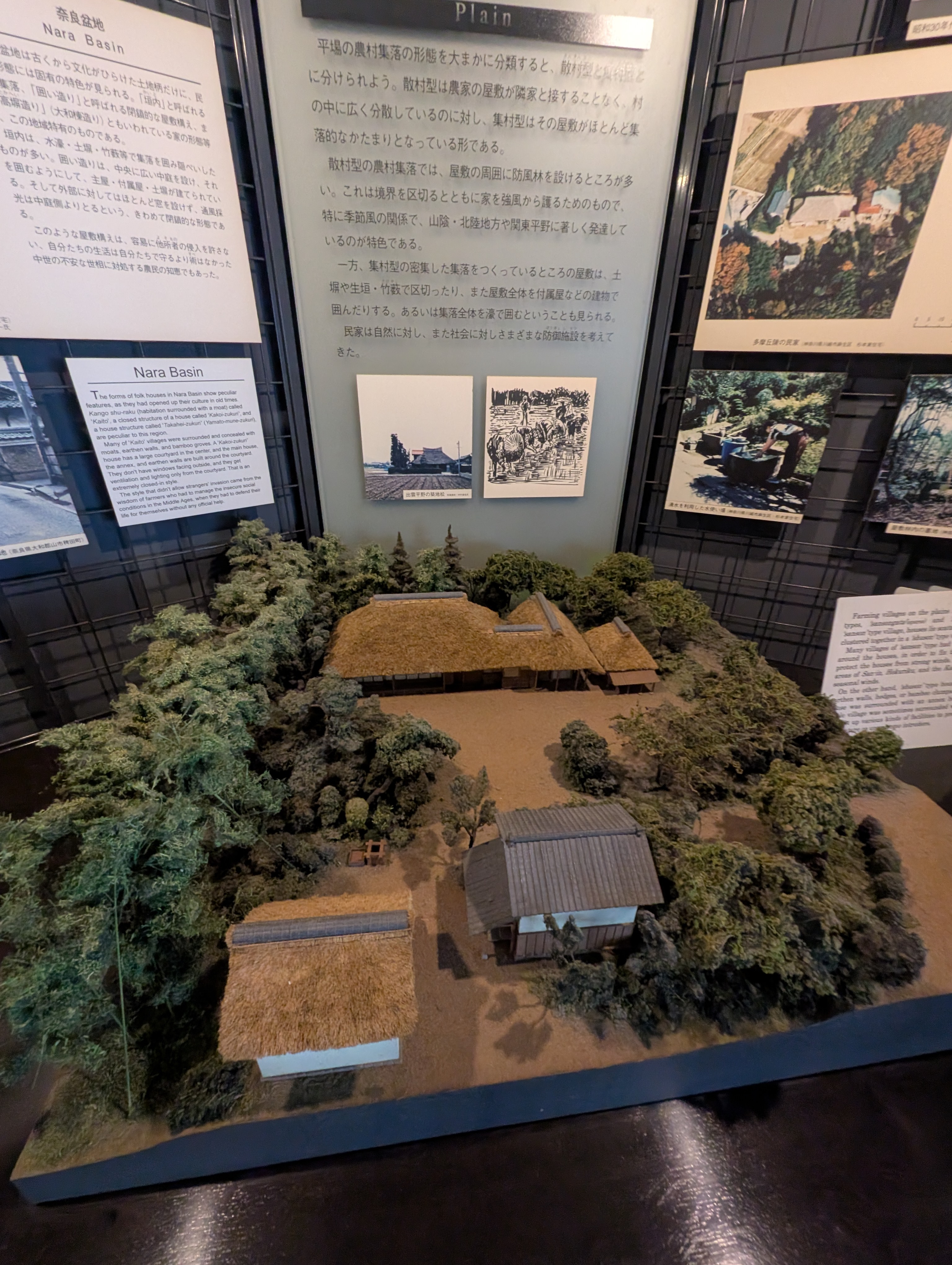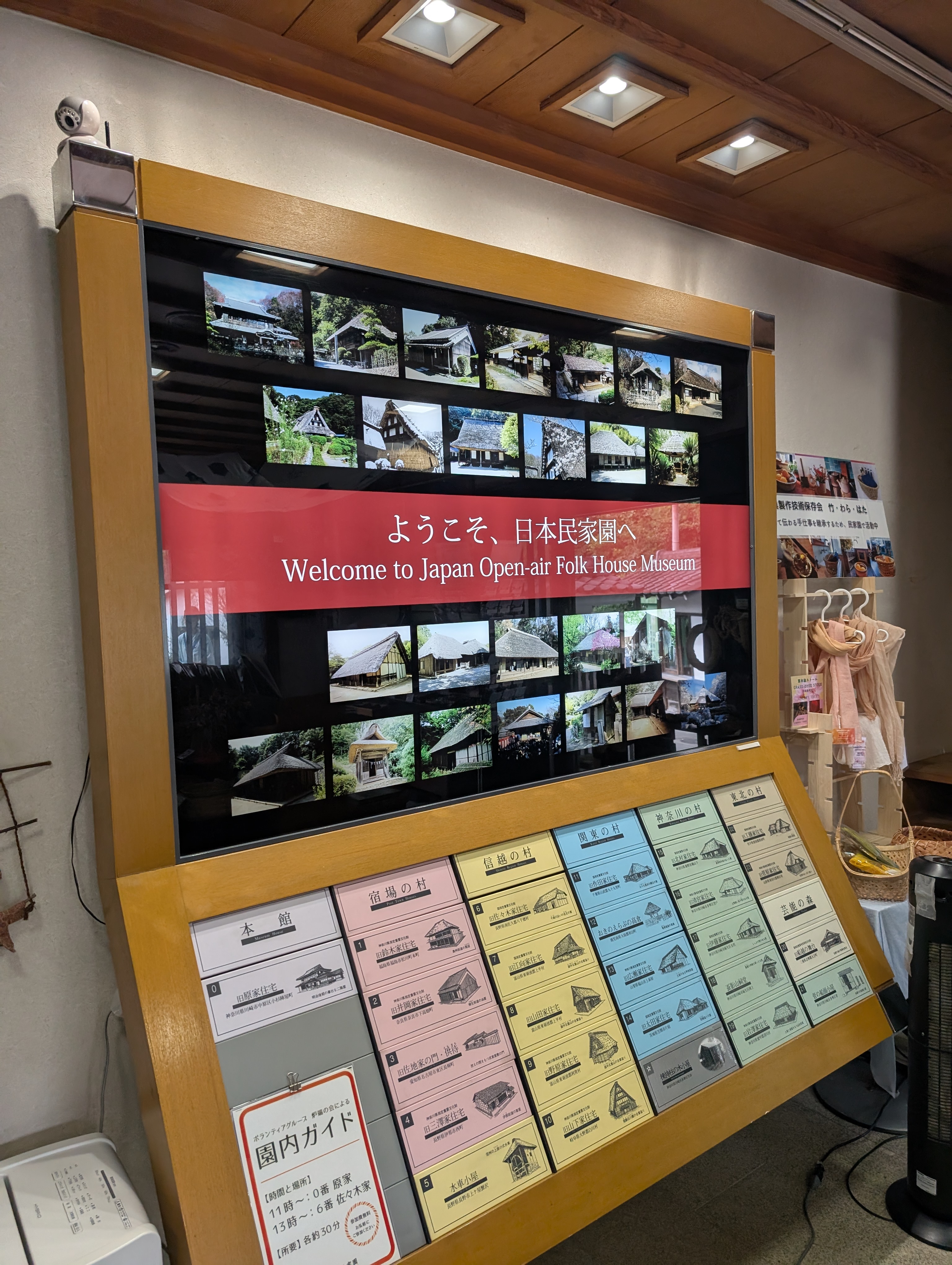 !本館展示室にある案内パネルです。ここには移築された古民家の一覧がズラリ!東日本の民家をはじめ、水車小屋や船頭小屋、高倉など多様な建物があるのがわかります。まずはここで基礎知識を学んでから園内を回るのがおすすめです。