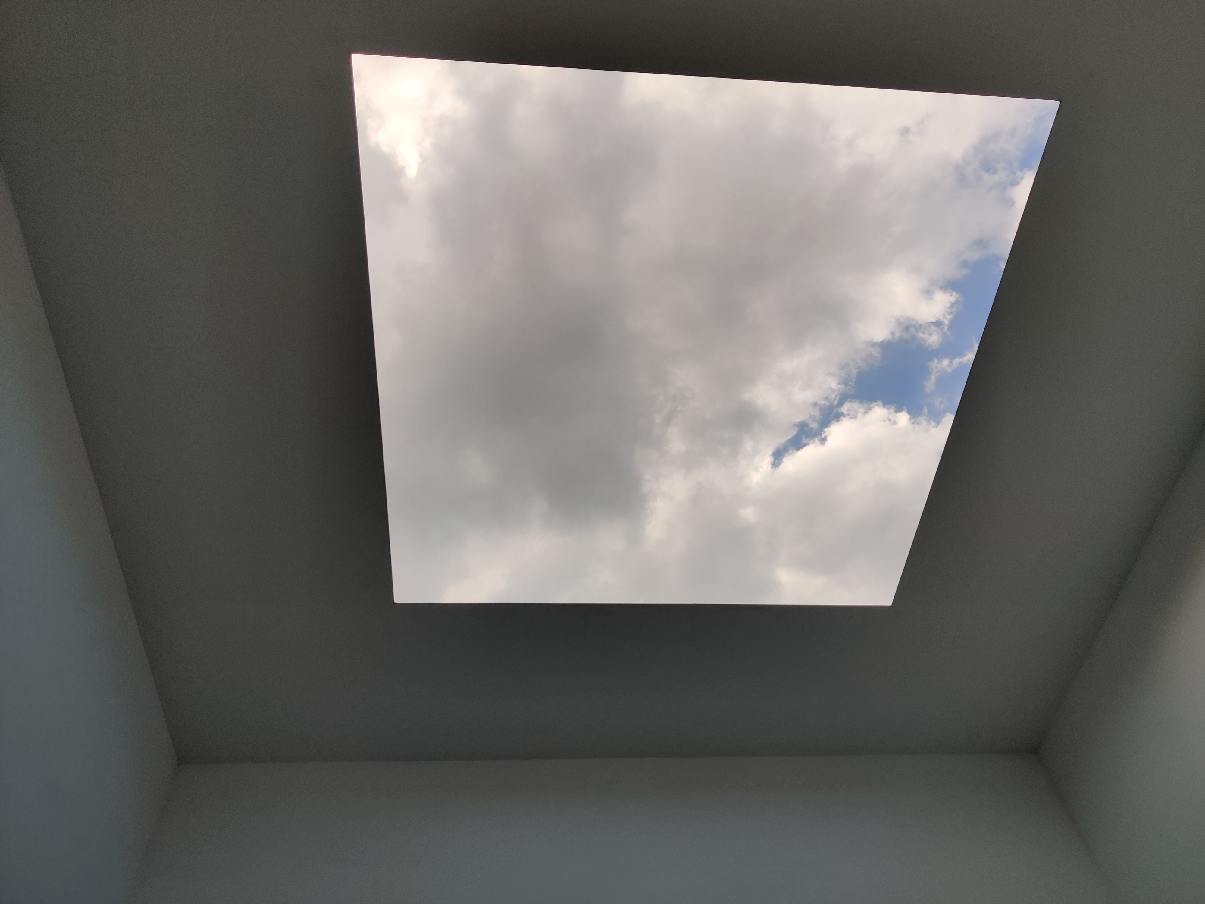 📷 写真のポイント:ジェームズ・タレルの《ブルー・プラネット・スカイ》(通称:タレルの部屋)。天井が正方形に切り取られていて、そこから生の空を見上げることができます。雲の流れや光の移ろいを感じられる、静寂と癒やしの空間です。