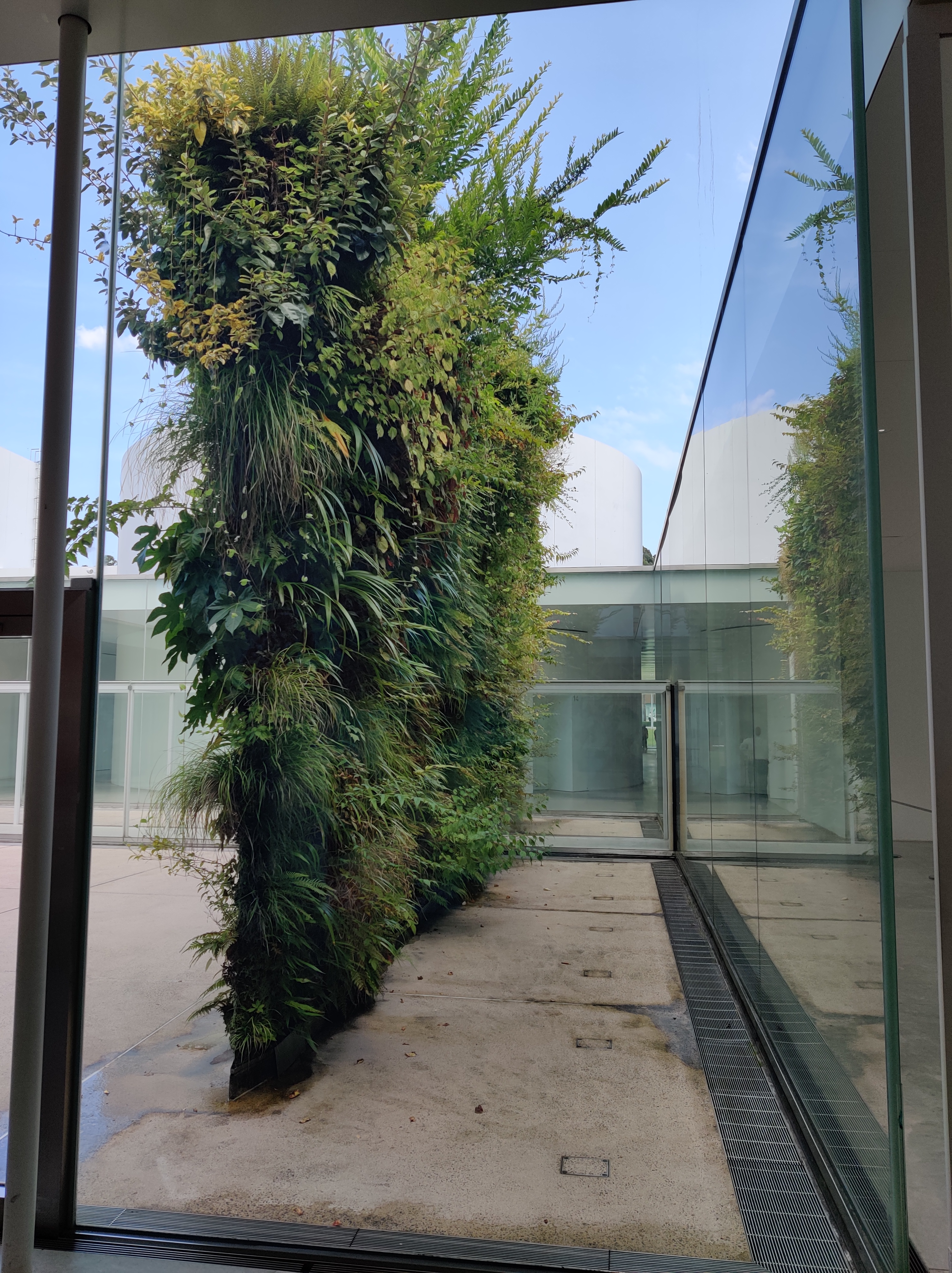 📷 写真のポイント:ガラス張りの明るい通路に突如現れる、パトリック・ブラン作の《緑の橋》。無機質な建築と、生命力あふれる豊かな植物の壁との対比がとてもフォトジェニック!ガラスに反射する景色も含めて美しい空間です。